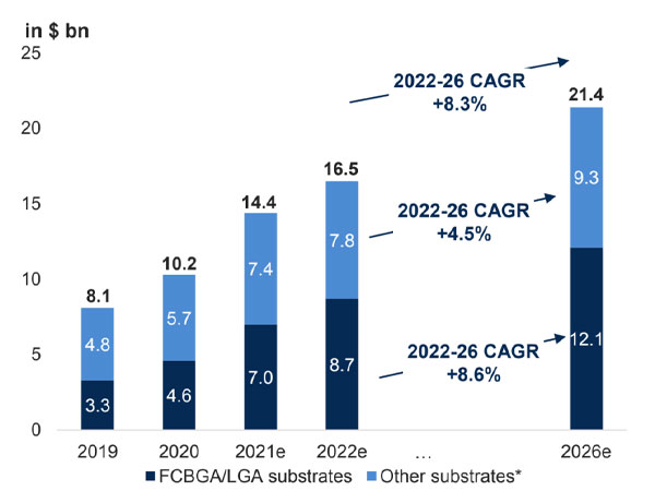 Advanced packaging allows the assembly of dies (chiplets) with distinct functions at various technology nodes to achieve package-level system integration. Substrate technology is evolving continuously and becoming one of the key enablers in facilitating this trend and to experience continued market growth.